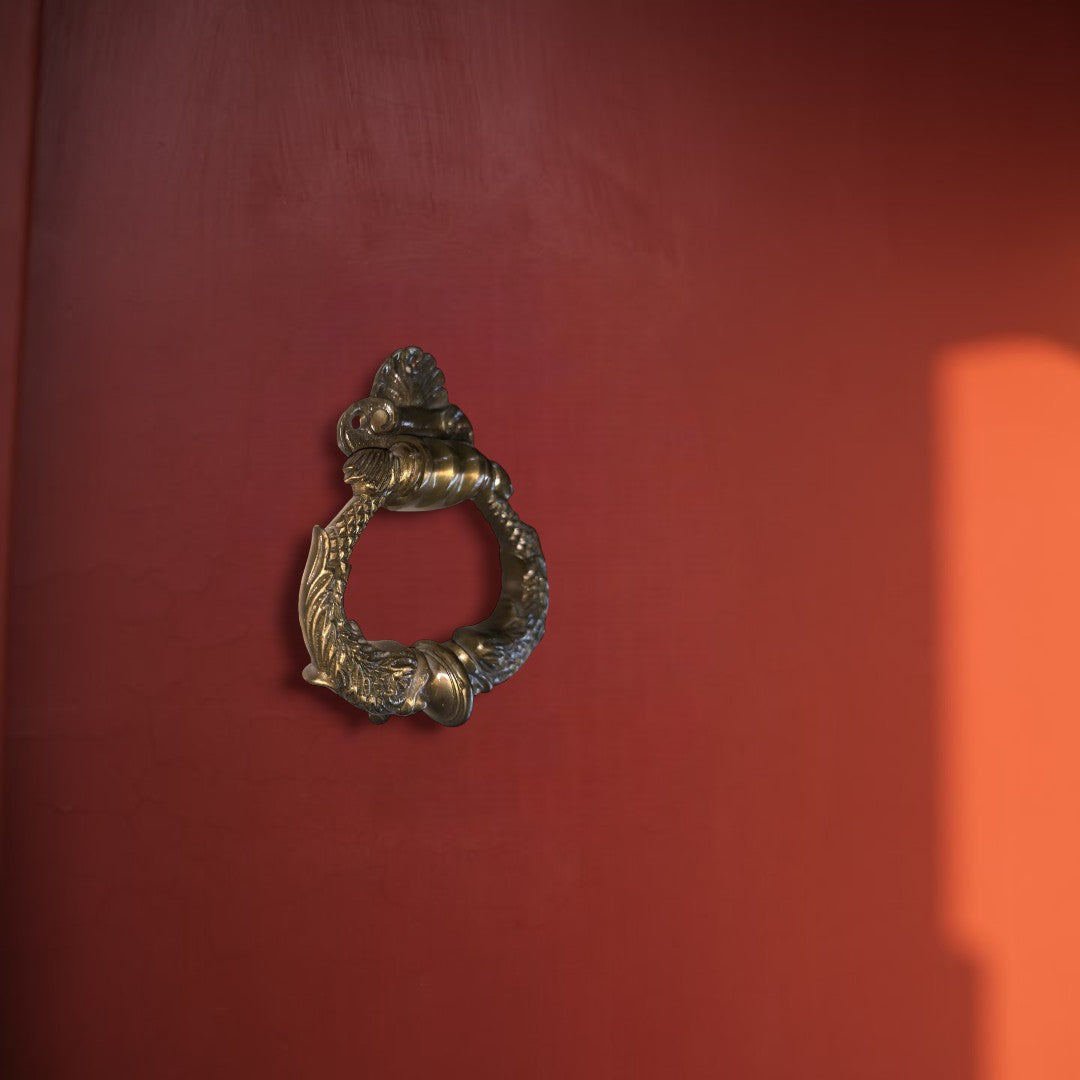 This door accessory is designed to integrate seamlessly with other door handles for home, including brass door handles for the main door. Its versatility allows it to pair beautifully with various main door handles, ensuring a cohesive and aesthetically pleasing entrance. The door knocker's design features an exquisite blend of form and function, making it not just a decorative element but a practical one that will announce your guests with style.