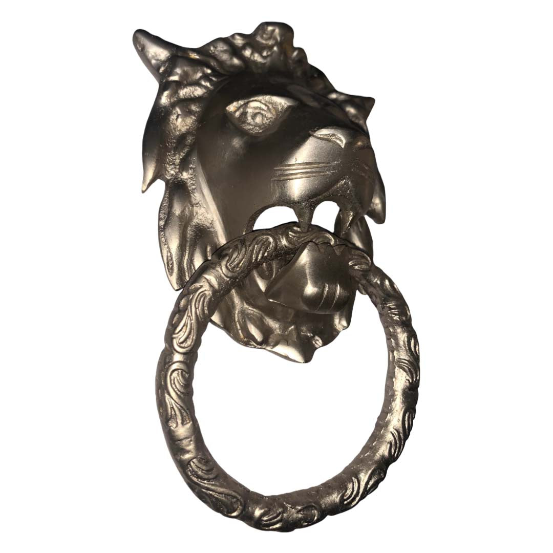 Enhance the grandeur of your entrance with the Antique Lion Door Knocker from EPOCH ELEMENTS, a distinguished addition to your collection of door accessories. This door knocker for the main door stands as a testament to timeless design and superior craftsmanship. Each piece is expertly forged from high-quality brass, ensuring both durability and a lasting shine that complements any architectural style, whether adorning a wooden door or a modern facade.