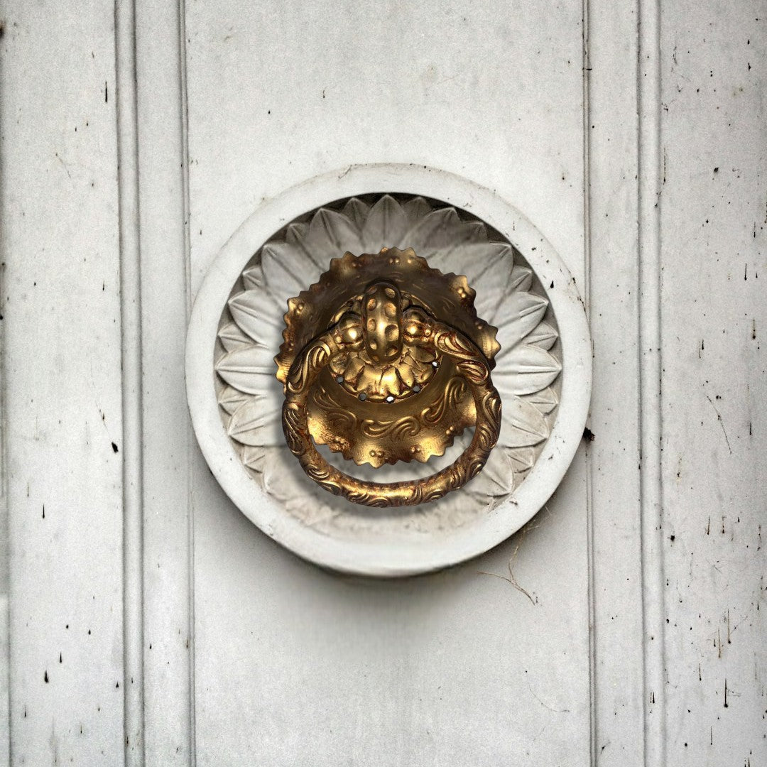Enhance the grandeur of your entrance with the Antique Decorative Door Knocker from EPOCH ELEMENTS, a distinguished addition to your collection of door accessories. This door knocker for the main door stands as a testament to timeless design and superior craftsmanship. Each piece is expertly forged from high-quality brass, ensuring both durability and a lasting shine that complements any architectural style, whether adorning a wooden door or a modern facade.