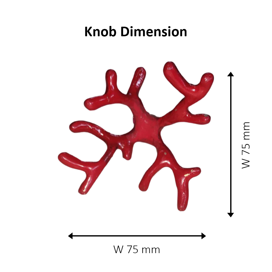 Style: Antique; Size: L-75, W-75, H- 50; Finish : Hardware with enamel paint; Material : Iron; Colour : Red; Suitable for: Doors, Cabinets etc. Introducing the Red Coral Iron Knob – a vibrant fusion of bold color and timeless design that infuses a touch of the ocean's allure into your living spaces. This knob is more than just a functional accessory; it's a vivid accent that brings warmth and a splash of color to any room.