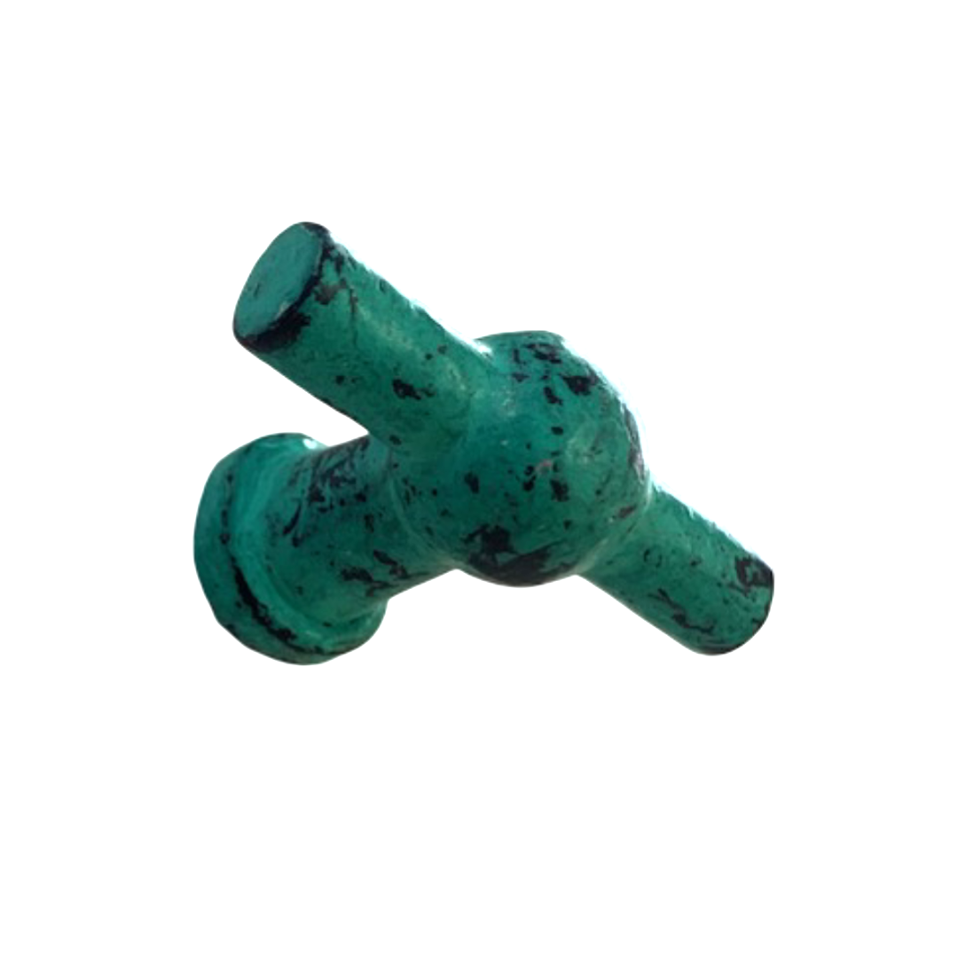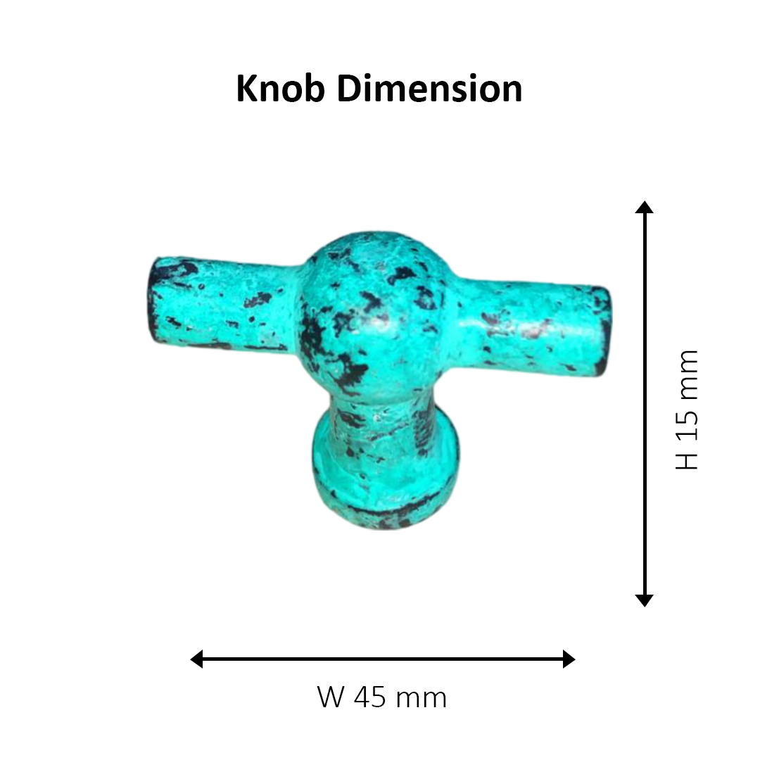 Style: Antique; Size: L-45, W-15, H- 35; Finish : Hardware with enamel paint; Material : Iron; Colour : Teal; Suitable for: Doors, Cabinets etc. Introducing the Teal Enamel Plated Iron Knob – a stunning blend of contemporary flair and durable craftsmanship that adds a splash of vibrant color to your home. This knob is more than just a functional accessory; it's a striking detail that enlivens any space it graces