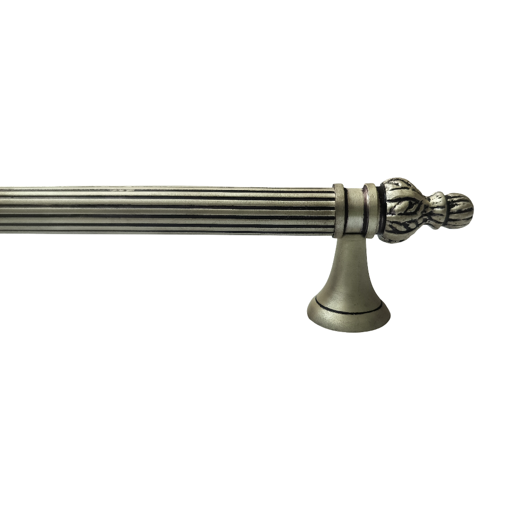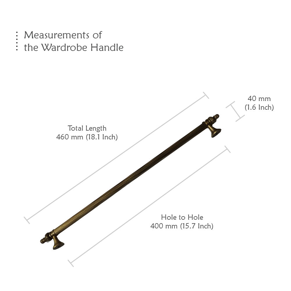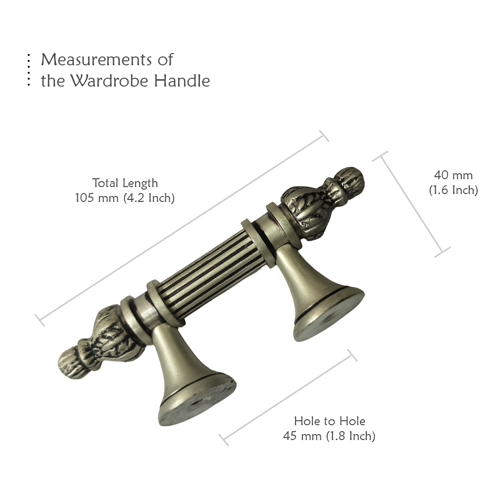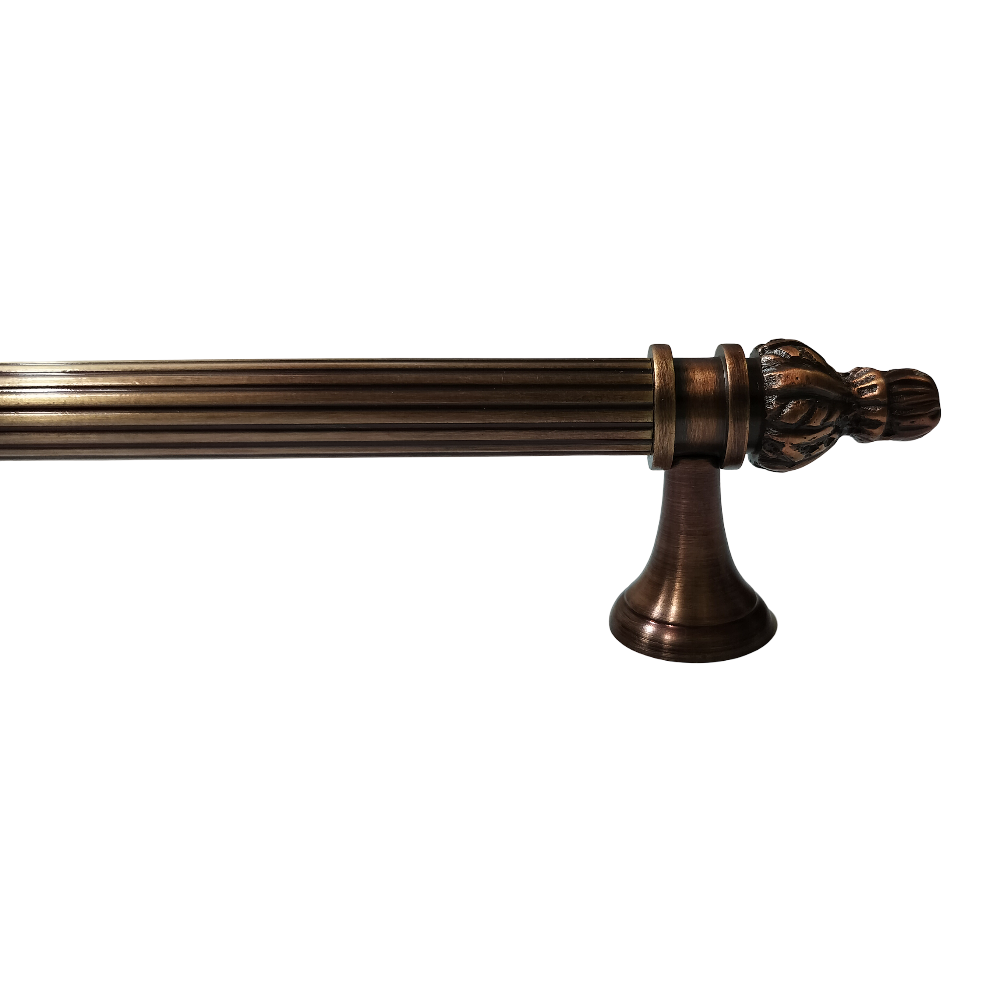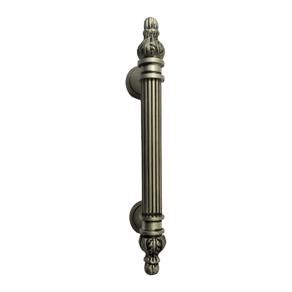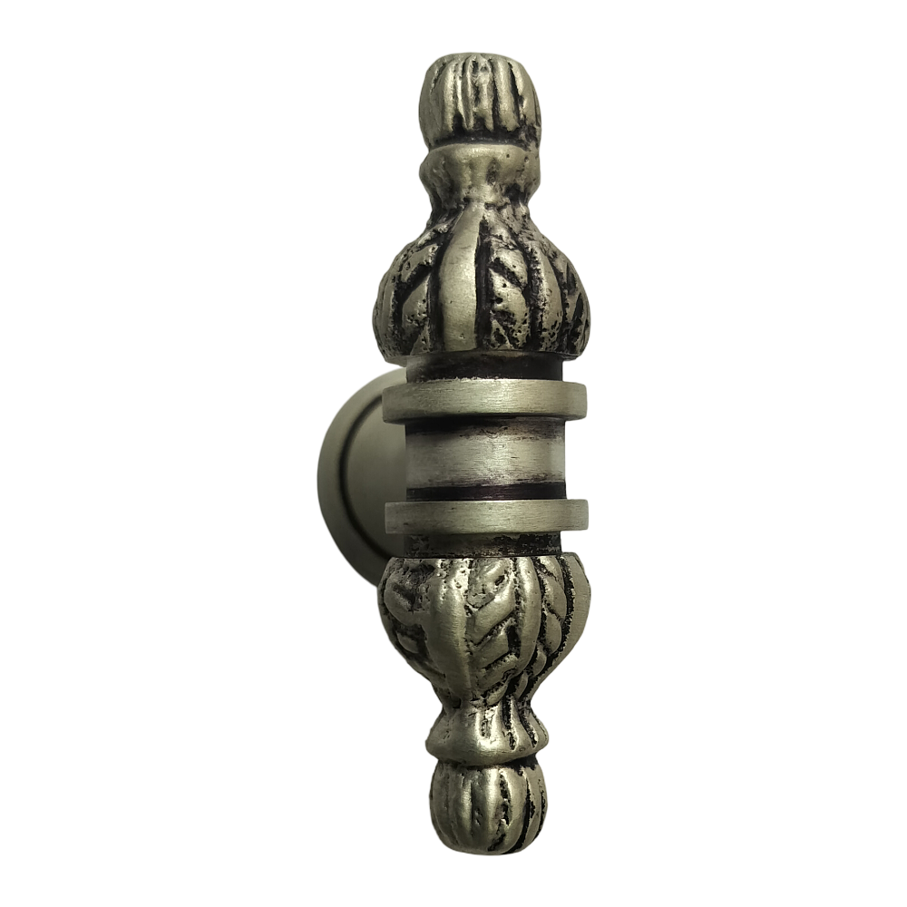 Designed for use on drawers, cabinets, wardrobes, and other wooden furniture, the handle combines classic aesthetics with modern durability. Its fluted central rod offers a secure grip, while the ornamental end caps with floral patterns add a regal touch. The robust brass construction ensures long-lasting performance, and the antique brass finish blends seamlessly with both heritage and contemporary interiors.