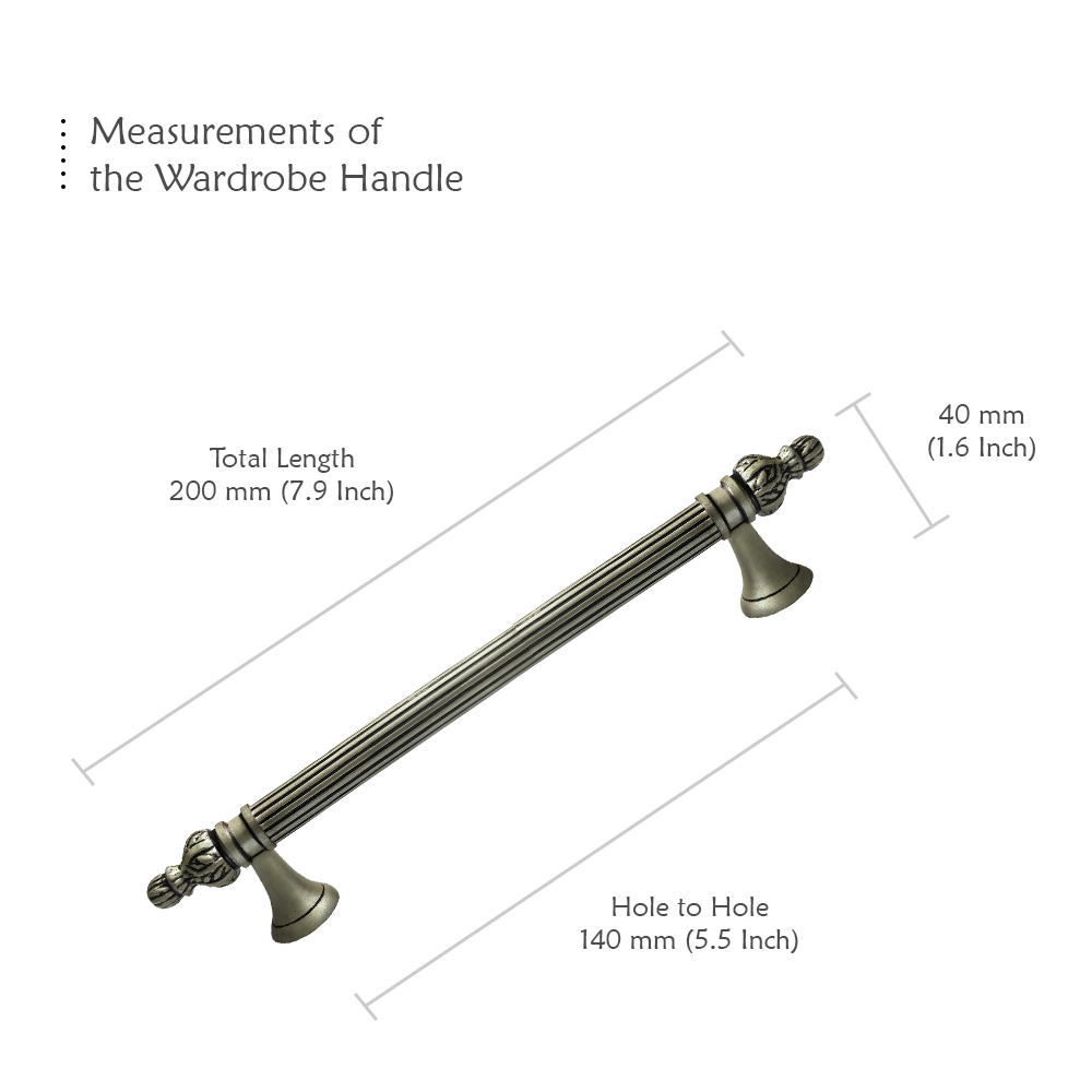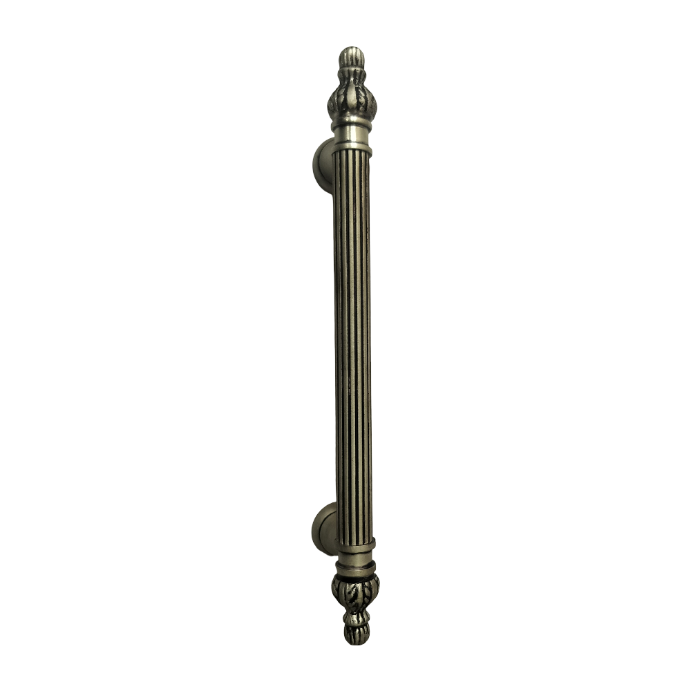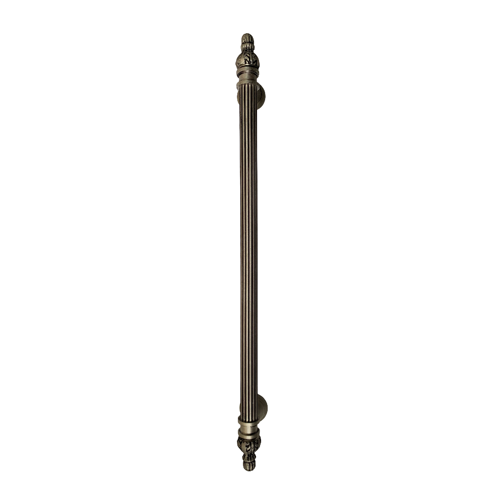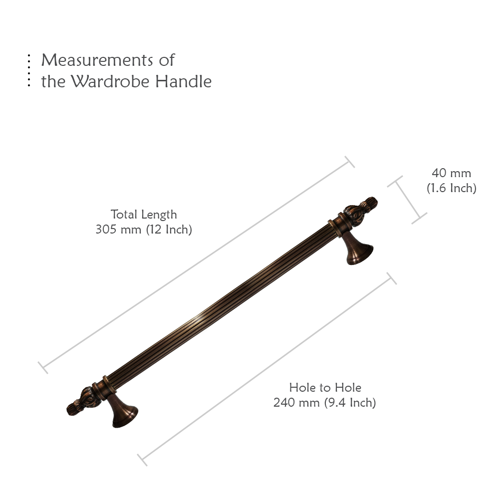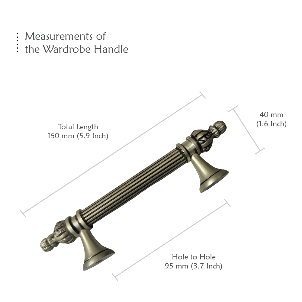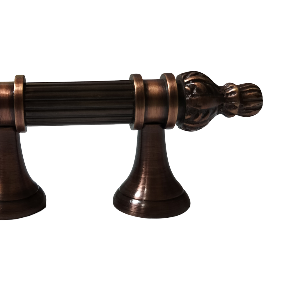 Designed for use on drawers, cabinets, wardrobes, and other wooden furniture, the handle combines classic aesthetics with modern durability. Its fluted central rod offers a secure grip, while the ornamental end caps with floral patterns add a regal touch. The robust brass construction ensures long-lasting performance, and the antique brass finish blends seamlessly with both heritage and contemporary interiors.