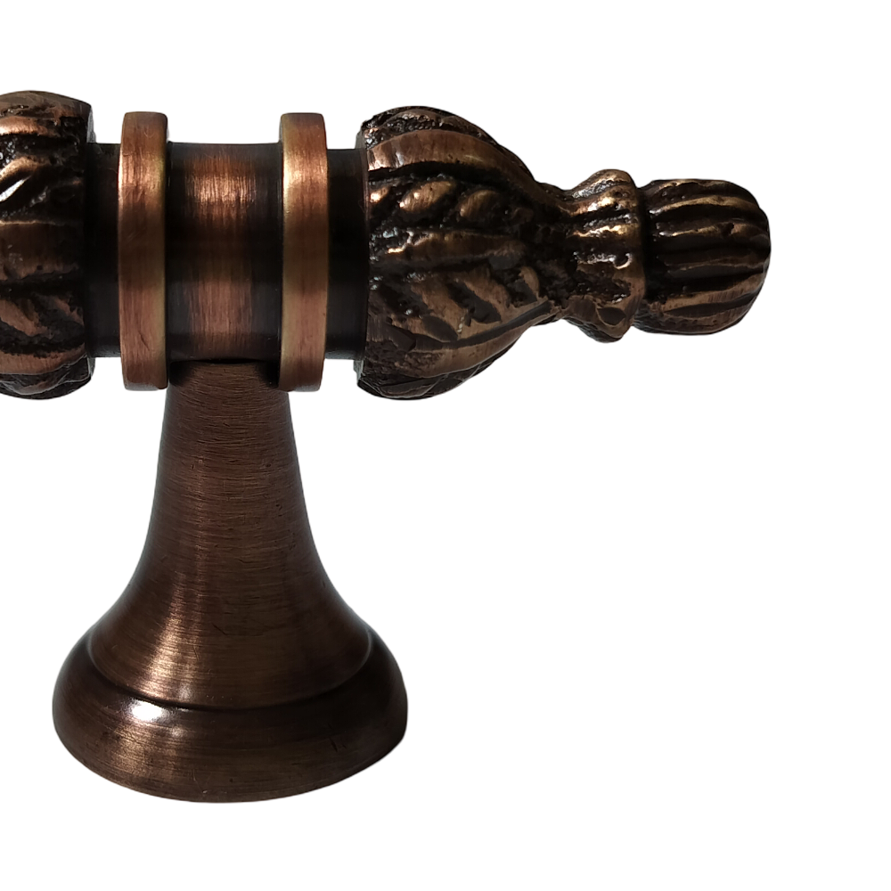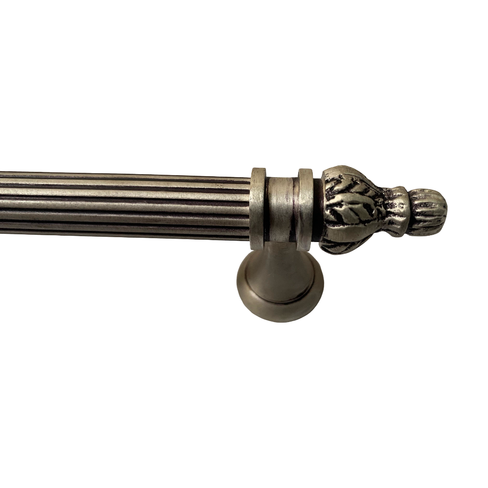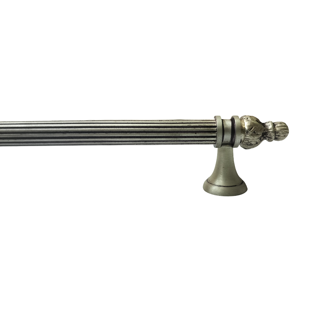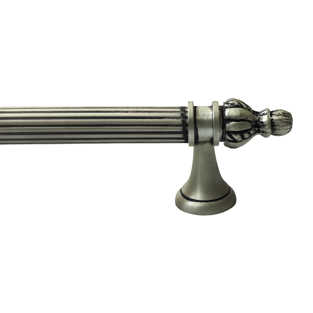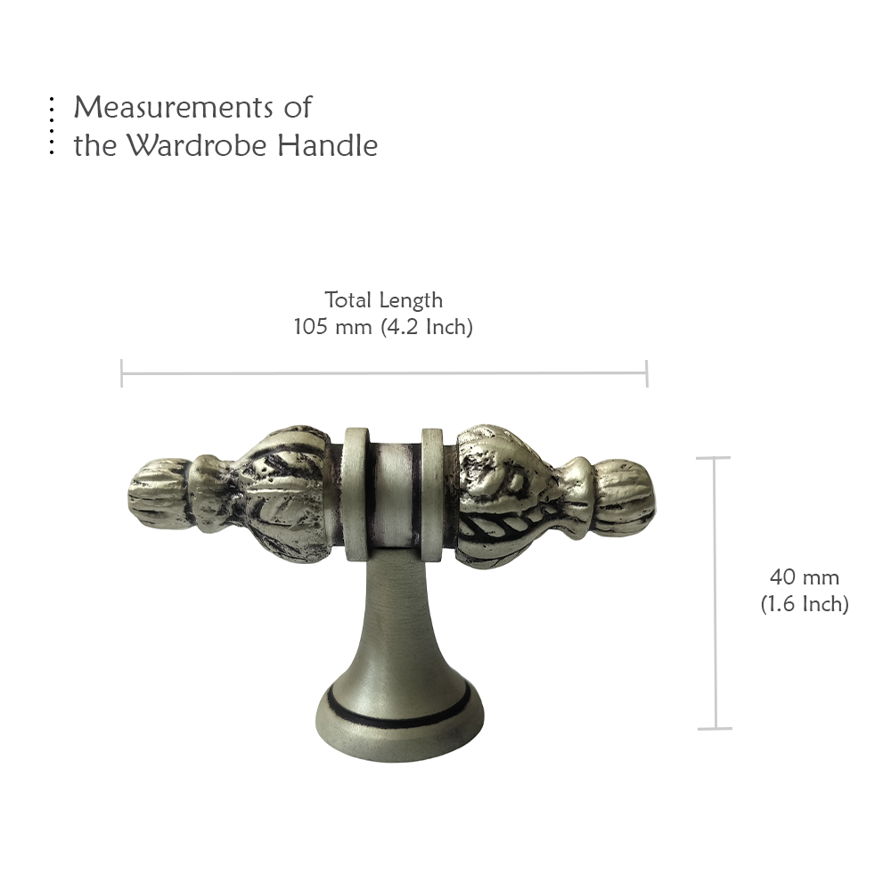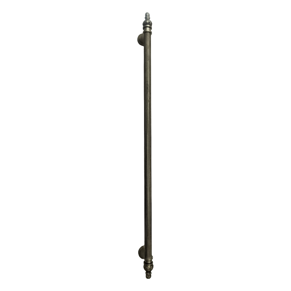 Designed for use on drawers, cabinets, wardrobes, and other wooden furniture, the handle combines classic aesthetics with modern durability. Its fluted central rod offers a secure grip, while the ornamental end caps with floral patterns add a regal touch. The robust brass construction ensures long-lasting performance, and the antique brass finish blends seamlessly with both heritage and contemporary interiors.