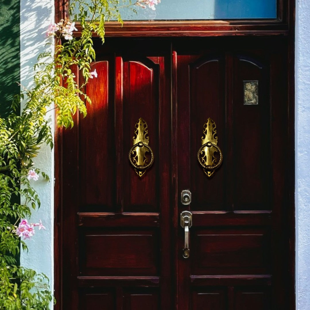 This door accessory is designed to integrate seamlessly with other door handles for home, including brass door handles for the main door. Its versatility allows it to pair beautifully with various main door handles, ensuring a cohesive and aesthetically pleasing entrance. The door knocker's design features an exquisite blend of form and function, making it not just a decorative element but a practical one that will announce your guests with style.